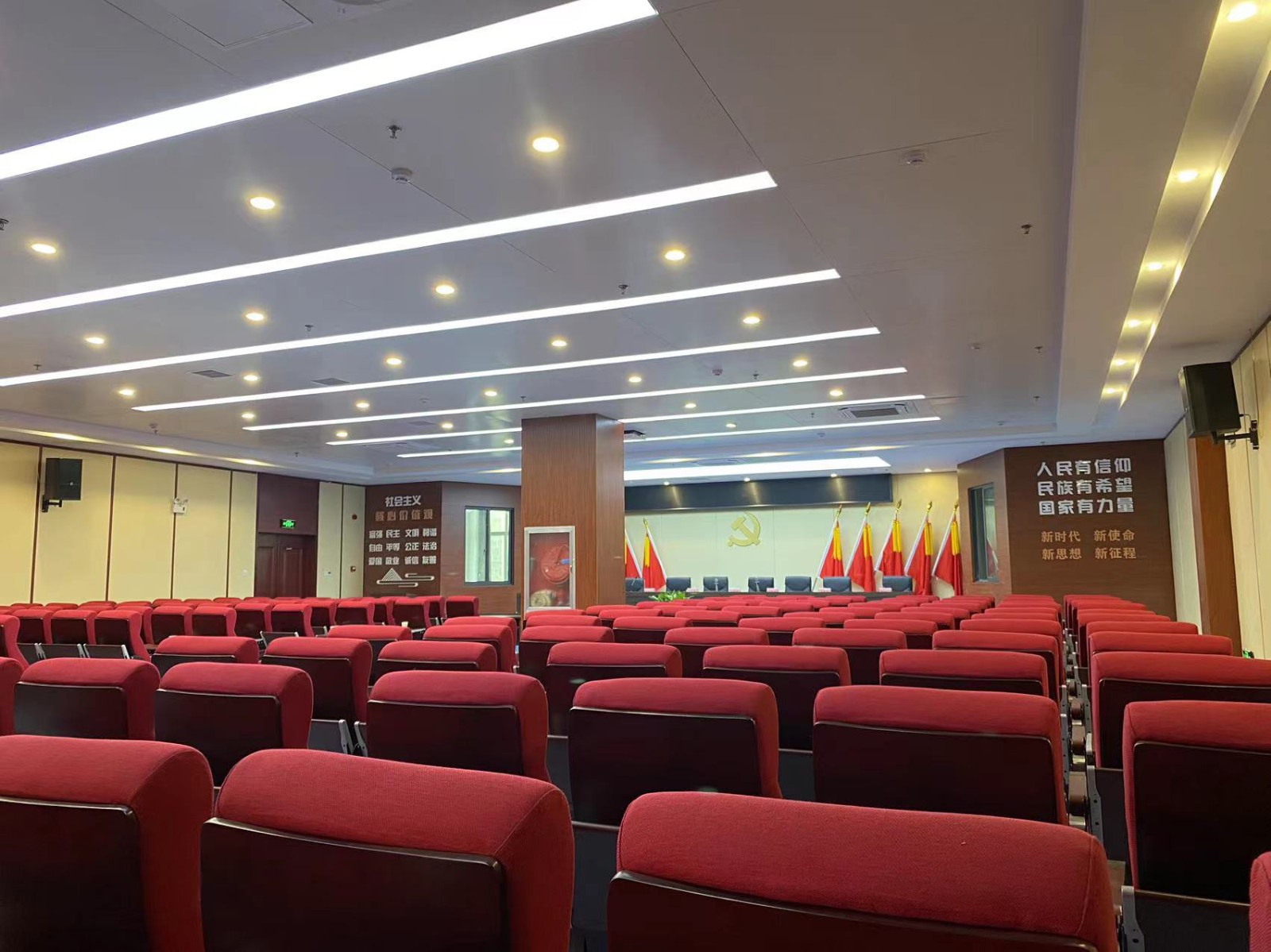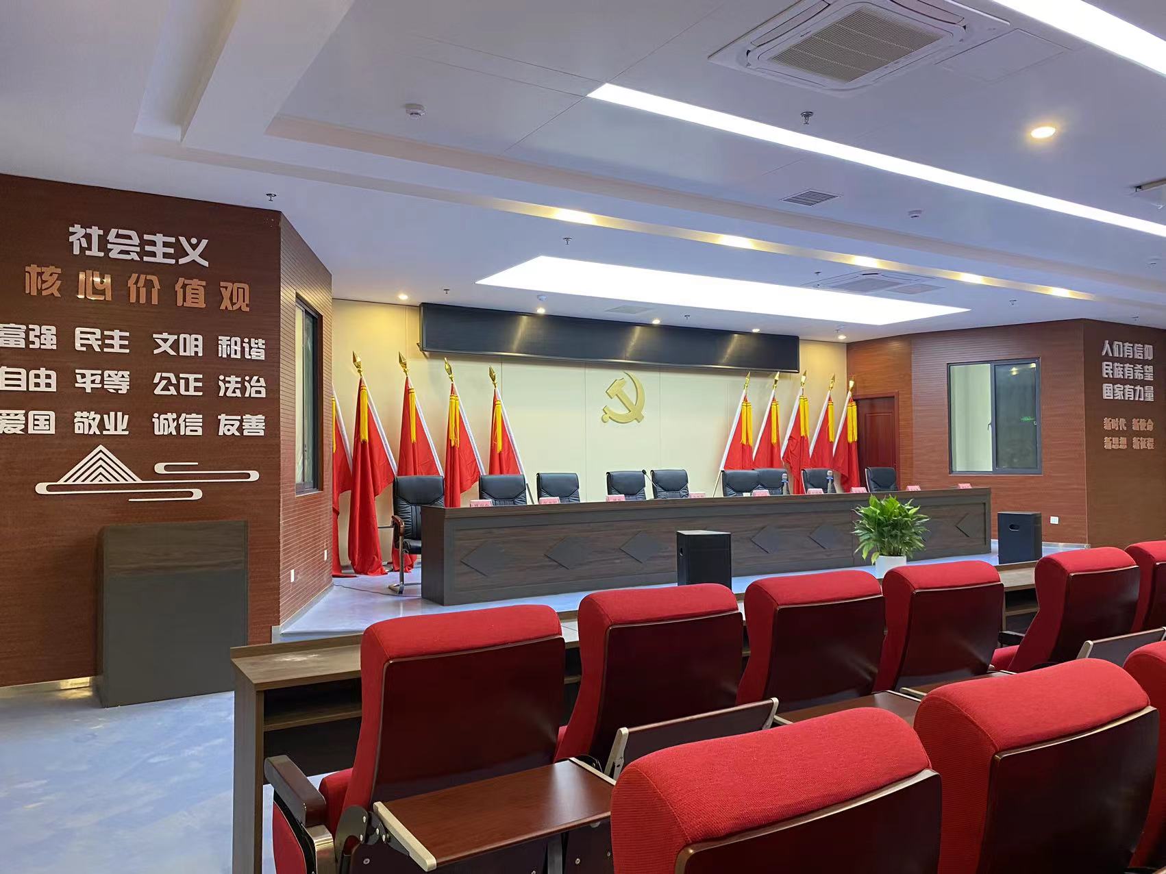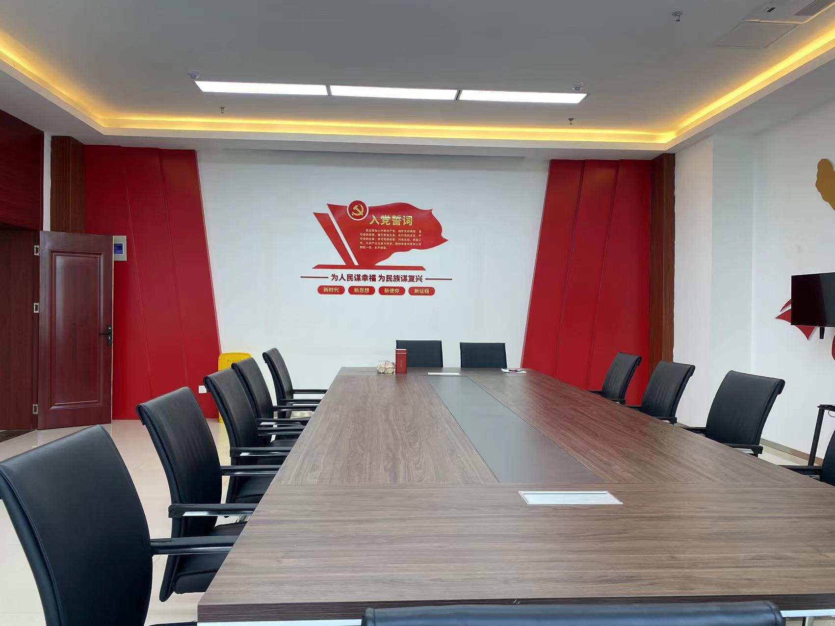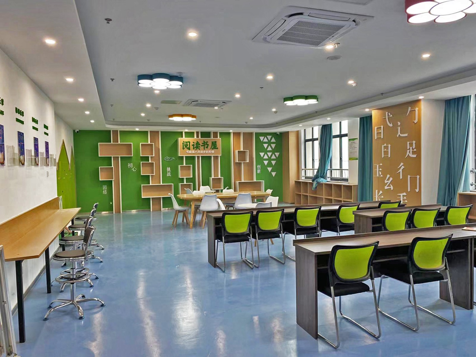 金店社区居民活动中心日期:2023-07-29 在设计之初,阅读书屋便以突出居民阅读功能作用这一点出发,书籍和休闲空间等方面都是展示的重点,而在色彩上面使用绿色更显温馨舒适,材质是多使用木制和绿植以亲民舒适为主。会议室则庄重大气体现党建文化。